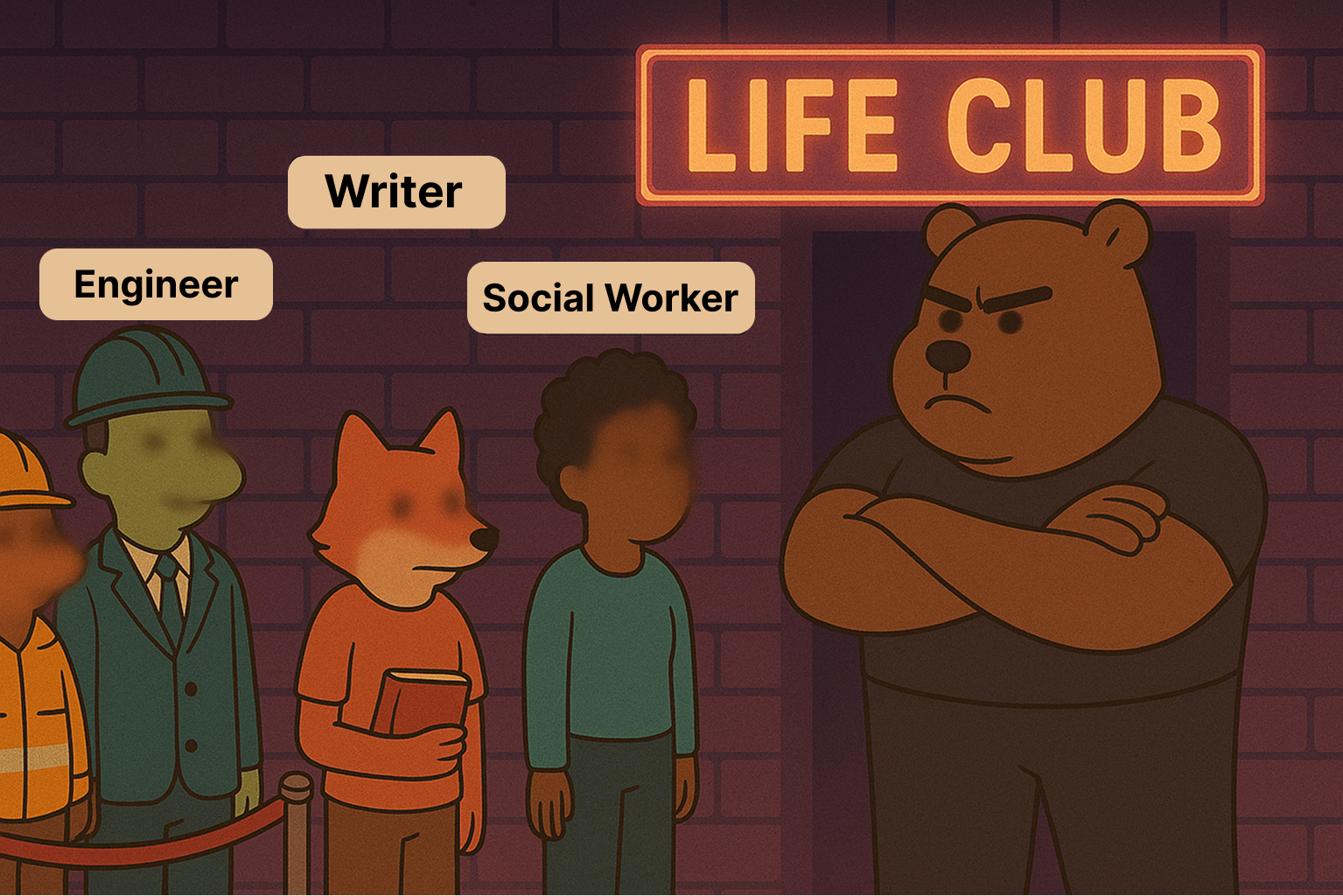 In the nightclub of life, we're playing bouncer, constantly checking status cards before letting people in.